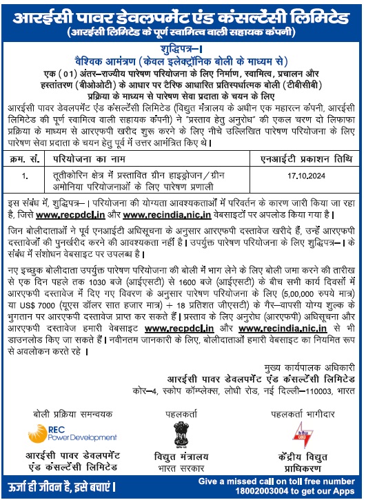 | Proposal Document for Selection of Bidder as Transmission Service Provider to develop Inter-State Transmission system for “Transmission system for evacuation of power from Rajasthan REZ Ph-IV (Part-5: 6 GW) [Barmer Complex] Barmer-II: 6 GW (Solar) (LCC Configuration)” through tariff based competitive bidding process. |