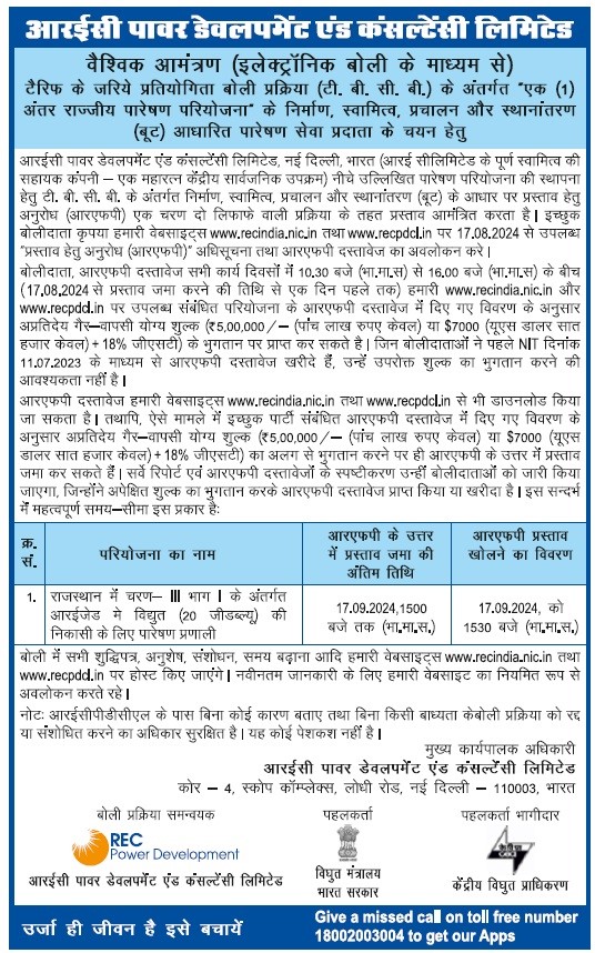| Request for Proposal Document for selection of Bidder as Transmission Service Provider through tariff based competitive bidding process to establish Inter-State Transmission system for “Transmission system for evacuation of power from REZ in Rajasthan (20 GW) under Phase-III Part I" |
